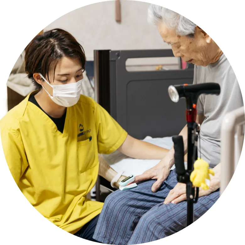 病状の観察や医療処置、日常生活の支援、リハビリ、介護相談など、幅広いサービスを提供しています。詳しくは「サービス内容」のページをご覧ください。